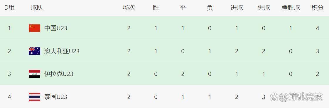 目前D组的积分榜上,中国队1胜1平积4分位居榜首,澳大利亚队3分排名第二,伊拉克队2分位列第三,泰国队1分垫底。 根据出线规则,小组前两名将晋级淘汰赛。 对于泰国队而言,他们只有取胜才能保留晋级希望,这势必会影响他们的战术选择。