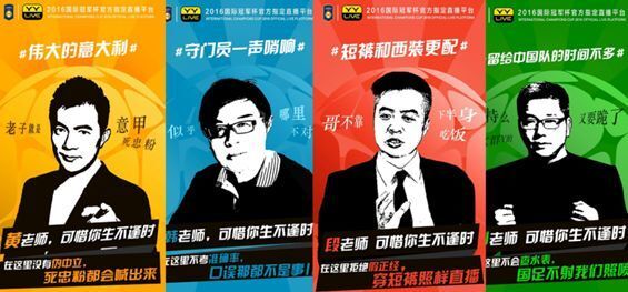 不光如此,YY LIVE目前还在全国范围内大规模的招募足球解说员。而他们的口号:“他们生不逢时,我们风华正茂”。与其相匹配的海报更让人眼前一亮。似乎YY LIVE此次切入足球赛事直播并不仅仅是玩票,而是有了深耕的打算。