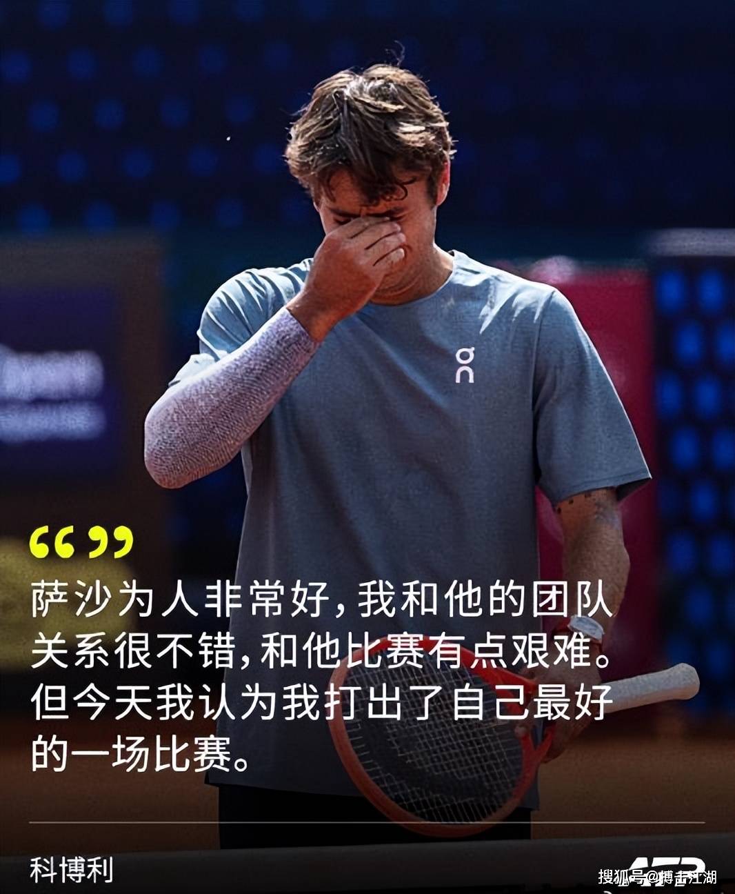 赛后,科博利激动地哭了,这是他职业生涯首次击败top5的球员。他说:“这是我职业生涯打得最好的比赛之一,对手也是我巡回赛中最好的朋友之一。”