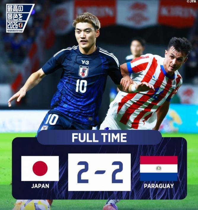 下半场易边再战,比赛节奏依然紧张。第64分钟,巴拉圭队再次取得领先,胡安·卡塞雷斯精准传中,迭戈·戈麦斯头球破门,将比分改写为2比1。然而,日本队在比赛的最后时刻展现了顽强的斗志。第94分钟,伊东纯也右路送出高质量传中,埋伏在门前的上田绮世抓住机会,头球攻门得手,日本队在比赛结束的哨响前扳平比分,最终以2比2与巴拉圭握手言和。本场比赛,小川航基的表现尤为亮眼,他作为日本队难得的高中锋,其出色的表现无疑为日本队冲击世界杯八强的重要拼图增添了新的希望。